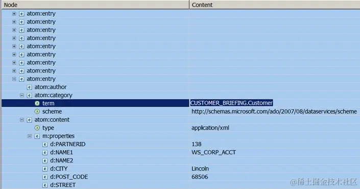如果我们直接在IE里面通过http://ldcigm2.jerry.corp:50018/sap/opu/sdata/sap/CUSTOMER_BRIEFING/CustomerCollection(133)?sap-client=001&$format=xml