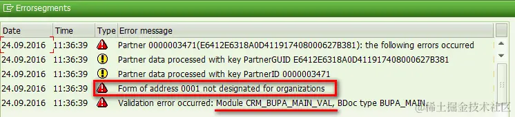 I have tried to download a customer from ERP to CRM via request download. After request download is finished, I saw error message in tcode SMW01: