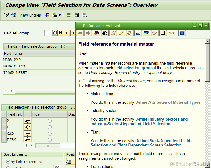 Unlike configuration in WebClient UI, the property control in MM GUI is based on TRANSACTION DATA level, that is to say, different industry sector / different plant / different material type can have different field properties.