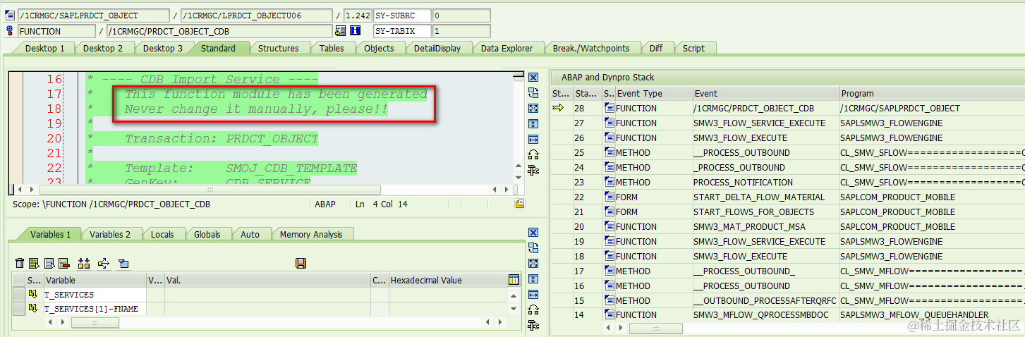 The first function module, /1CRMGC/PRDCT_OBJECT_CDB, is generated automatically by tool and responsible for CDB synchronization: