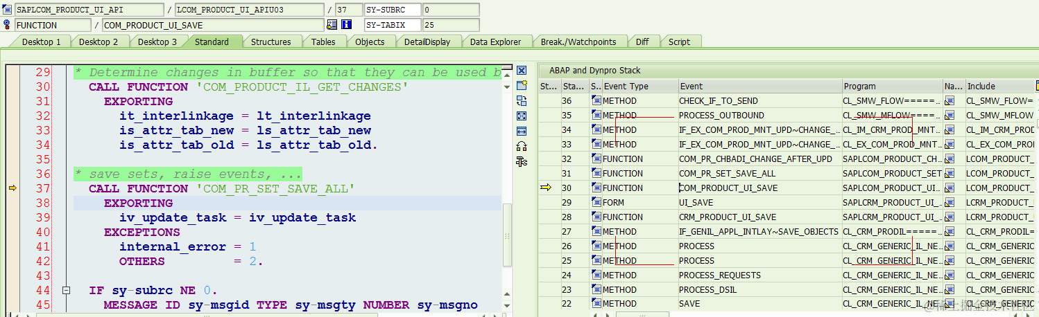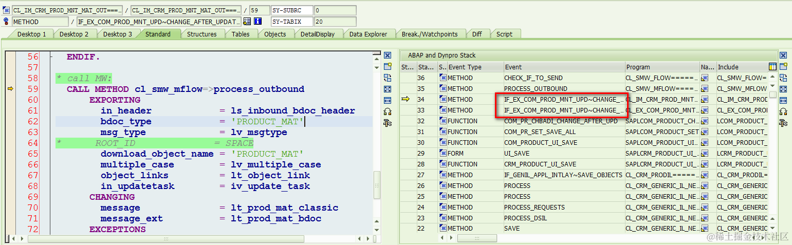 The related BDOC type PRODUCT_MAT is hard coded in line 62: