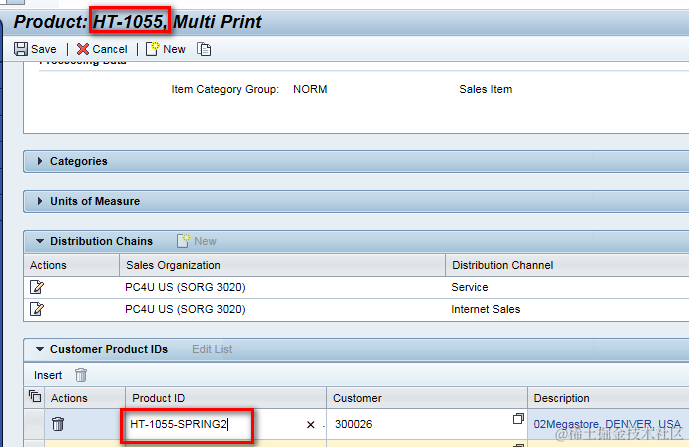 Product HT-1055 is downloaded from ERP. When you make changes in CRM for example change its customer product id: