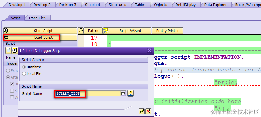 然后重新执行我们的测试代码, 使用Load Script加载刚才保存的ABAP脚本: