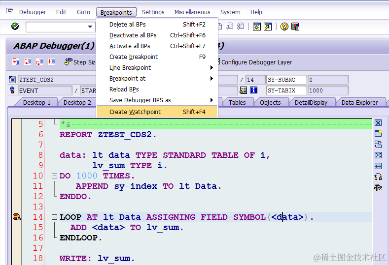 排云掌 - 利用ABAP调试器里的观察点(Watchpoint)