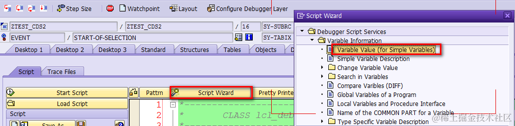 这个向导会自动帮我们生成ABAP脚本,其实也就是一段ABAP代码了,这段代码可以用编程的方式,在调试器激活的上下文里,获取某个ABAP变量的值。