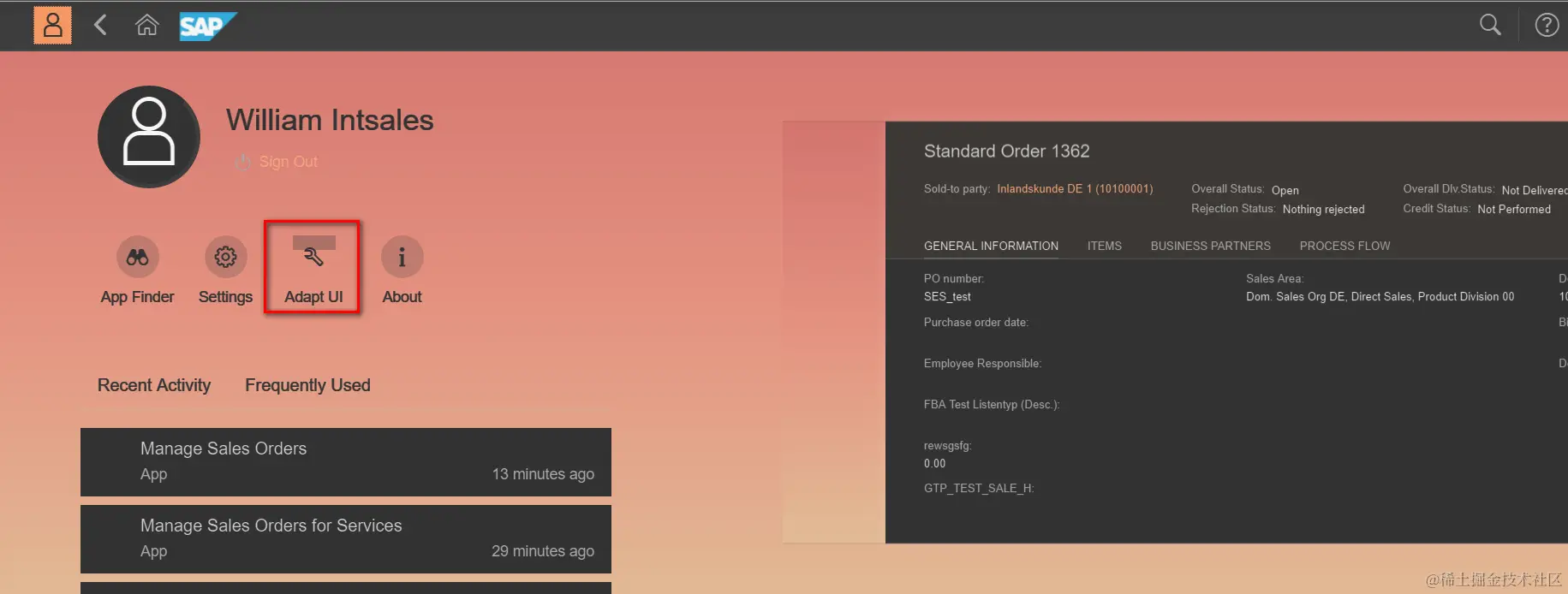 (1) Go to the Fiori UI where you would like to enhance, and enter adaptation mode by clicking this icon: