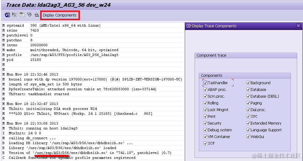其中/usr/sap/AG3/D56开头的路径,即是我当前登录的Application Server,ID为AG3,instance numeber 为56这台服务器的工作目录: