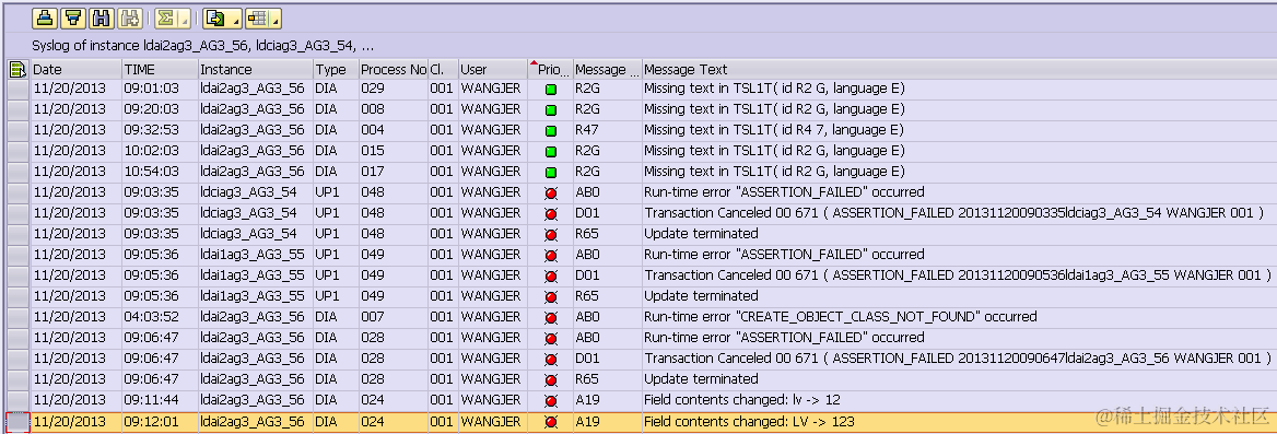 然后事务码SM21,打开系统日志查看工具: