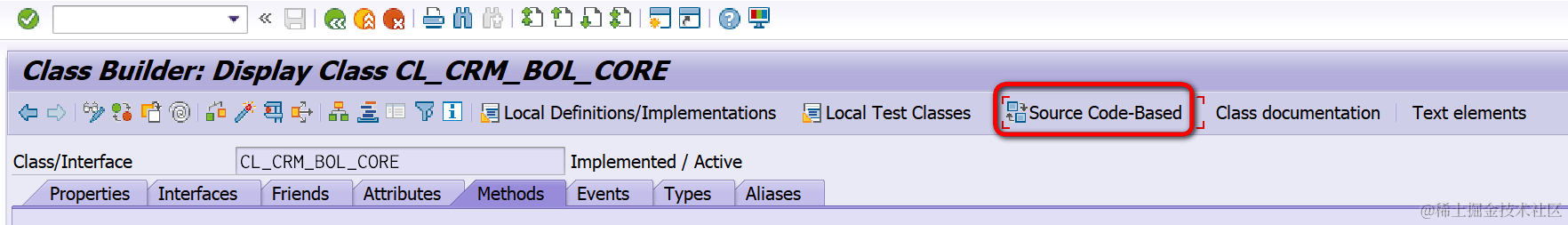 然后SE24里打开CL_CRM_BOL_CORE,点击Source Code Based:
