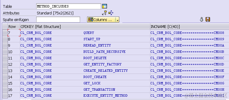 比如我想知道CL_CRM_BOL_CORE这个类所有方法对应的include名称,那么在工具类的GET_ALL_METHOD_INCLUDES打个断点,