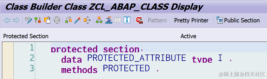 创建一个最简单的ABAP类,包含public,protected和private方法和属性各一个,麻雀虽小,五脏俱全。