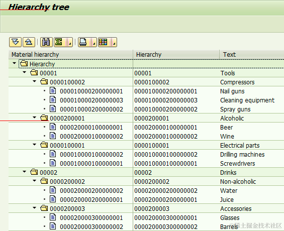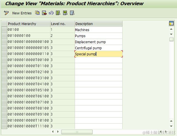 Below is a screenshot of Product hierarchy maintenance view in ERP.
