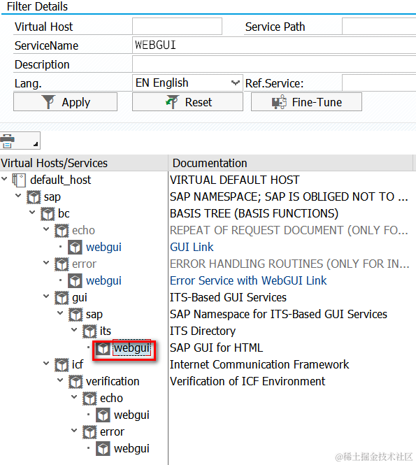 如果我们想体验ITS,也很容易。SICF事务码,输入webgui,执行: