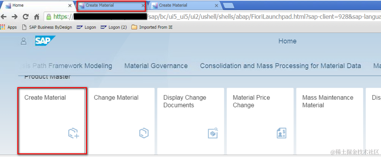 Jerry最初注意到这种将SAP GUI里的事务码运行在浏览器里的做法,是在日常工作的测试时,发现Fiori Launchpad里这个Create Material的tile.