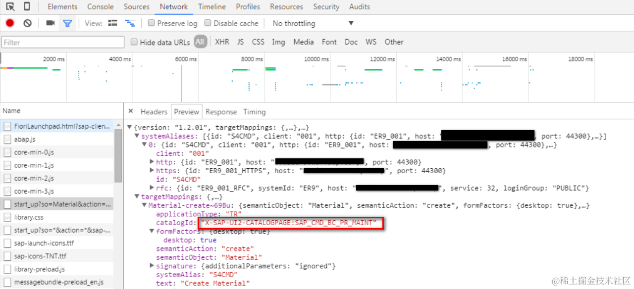 在浏览器里打开该tile,在Chrome开发者工具中把tile所属的Fiori Catalog ID记录下来:SAP_CMD_BC_PR_MAINT