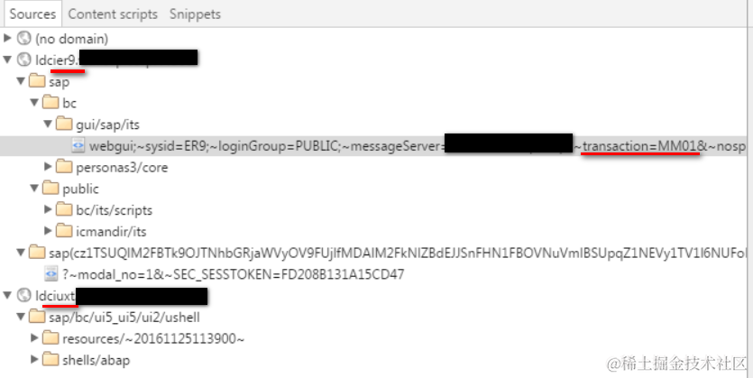 在Chrome开发者工具的Sources标签页里,能看到gui/sap/its这个路径片段。