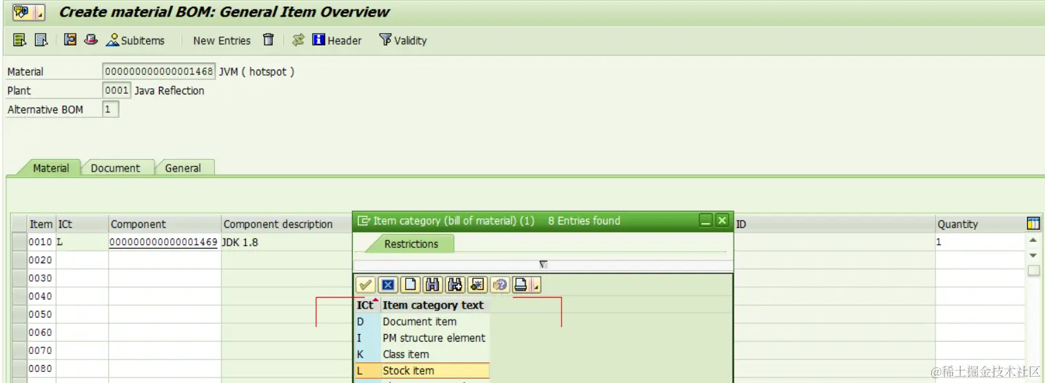 (2) Create BOM via tcode CS01 based on material 1468 with the following settings: