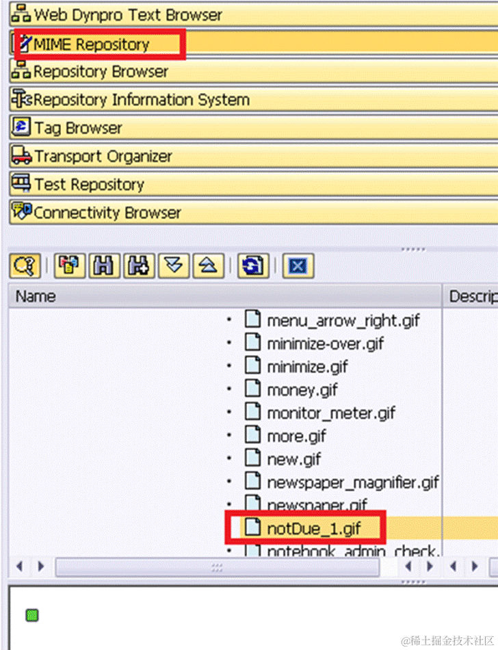 拿到这个url后到SE80, mime repository里去看这个icon的图片是否正确上传了: