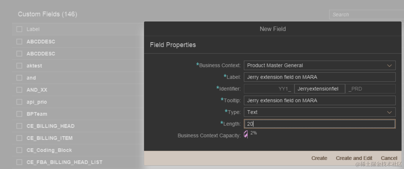 Create a new extension field in this tile: