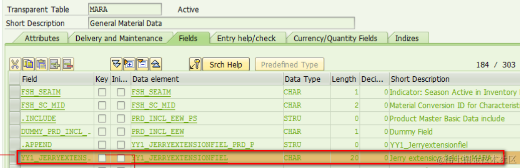 Suppose I have extended MARA with the following field, how could I know whether there are other tables extended automatically?