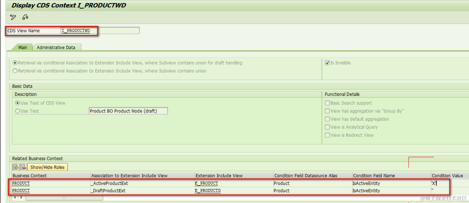总结一下,I_ProductWD里定义的E_PRODUCT的association更多是用于design time(register),之后在enable时知道如何创建extension view。然后有了extension view时,就跟E_Product没有直接关系了,因为extension view:ZZ1_PRE47GXHDI6P2ZLO3ADGY4HHFE里的内容是自动暴露为hosting view:I_PRODUCTWD的interface的。这也是为什么select *能自动出来,并不需要通过association。