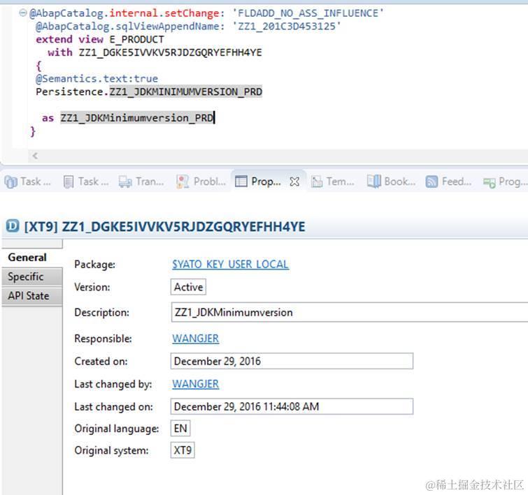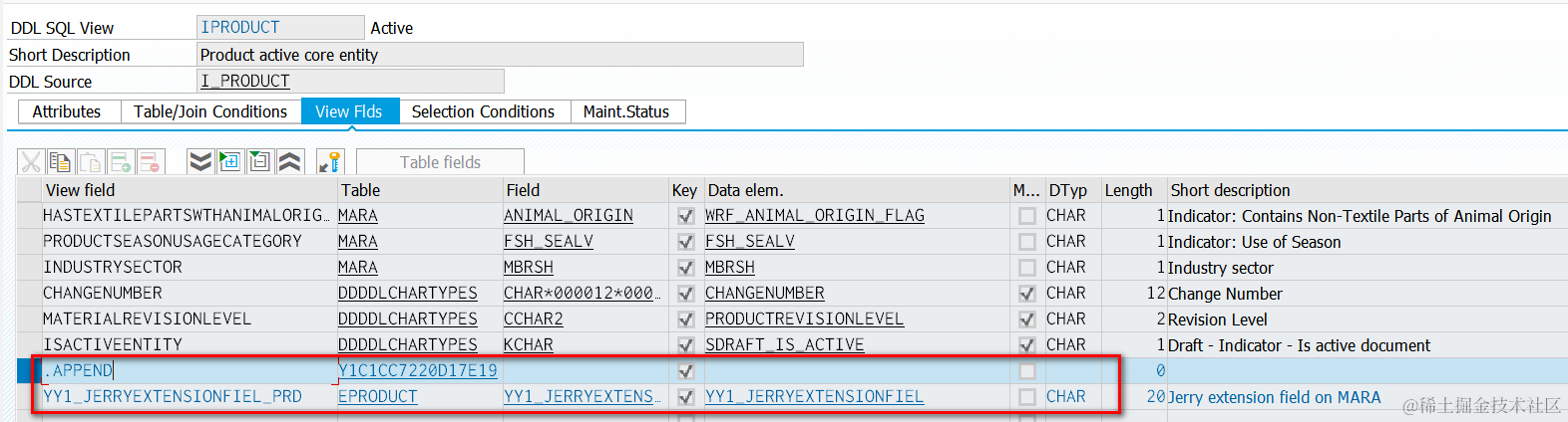 首先,上述红色的说法就是错误的,extension field并不是通过association从E_PRODUCT里读的. 我们要明确我们点enable usage的出发点是某个具体的extension field, 而不是从CDS view出发。选择了具体的extension field之后,再选择要extend的CDS view,点击publish,此时将会自动创建一个带有当前extension field的extension view,对选中的CDS extensible view进行扩展。这样造成的结果是,从SE11里观察SQL view能发现extension field会通过append的方式直接成为extensible view的一部分,这之后和E_PRODUCT再无任何关系。