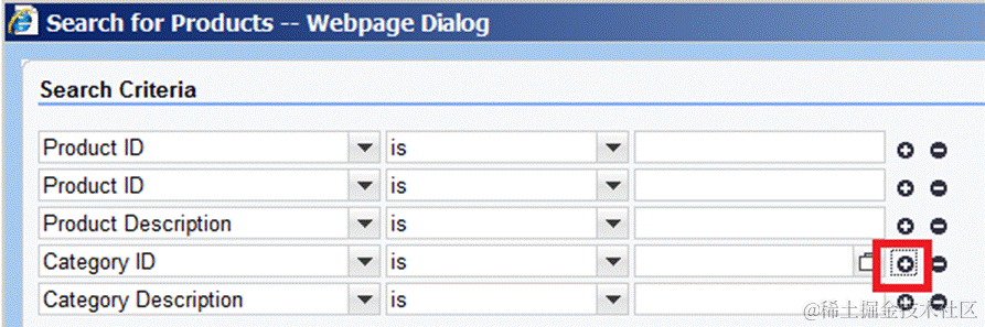 我看了一下,当我们在UI上点add button增加新的search criteria之后,是framework做的处理把新的row render出来,application本身不需要任何实现。