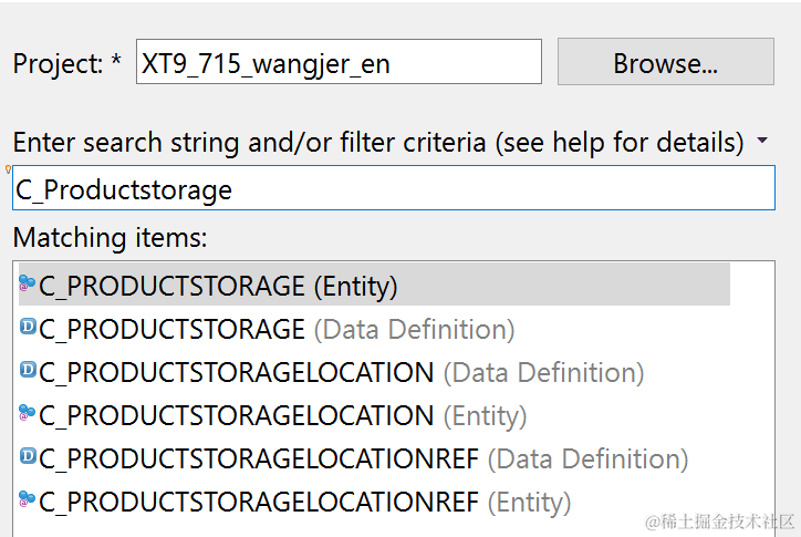 排在结果列表第一位的C_PRODUCTSTORAGE, 是一个CDS view.
