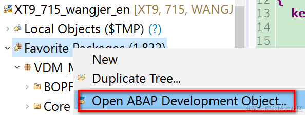 (3) 登录ABAP Development Tool,使用菜单"Open ABAP Development Object":