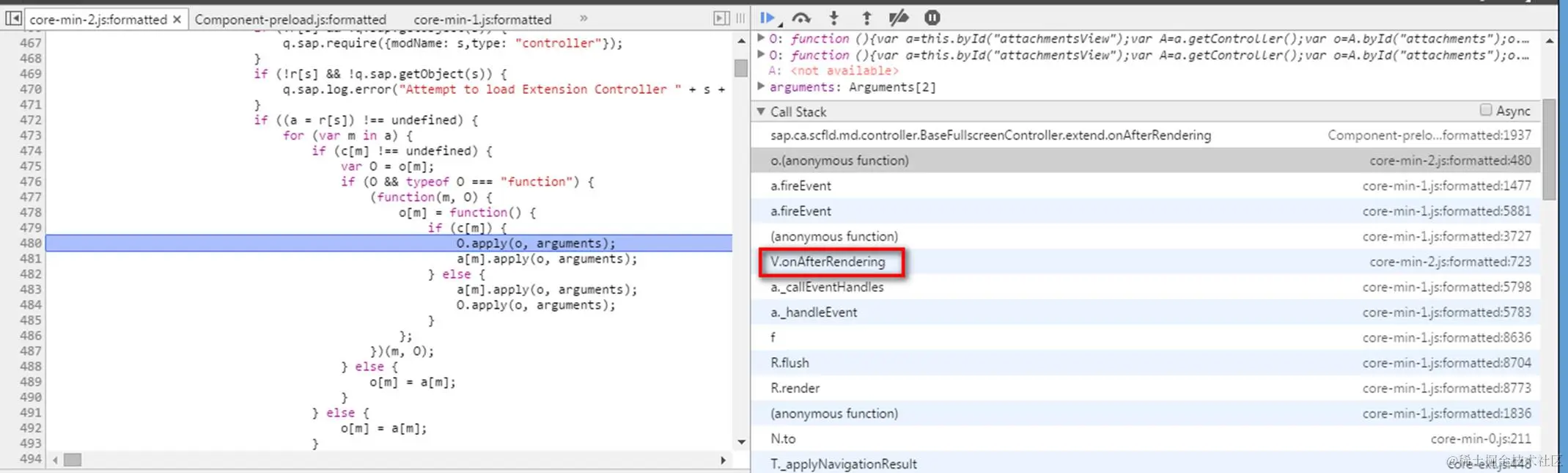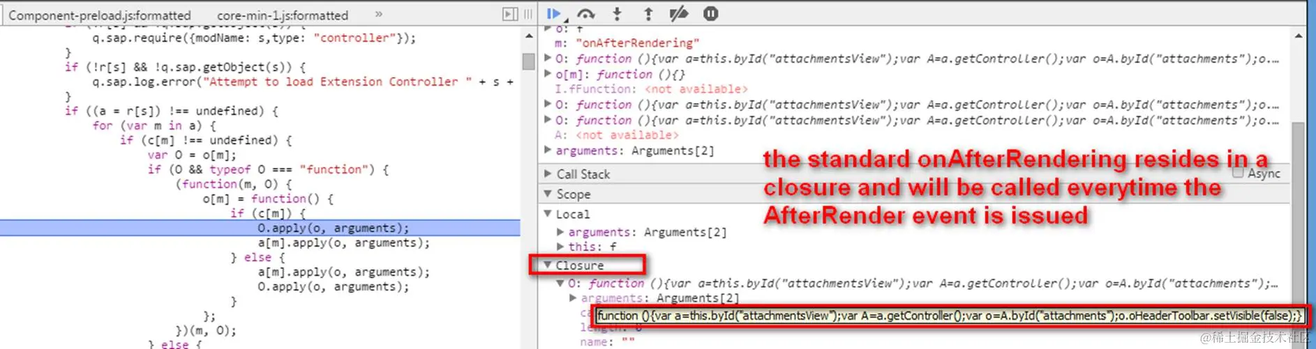 The AfterRendering function is not directly called but via event-subscribe&raise style, via javascript keyword apply.