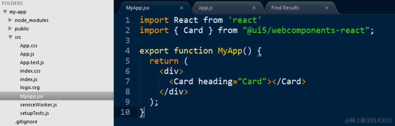 在MyApp.jsx里引入UI5针对React框架的开发的Card web Component: