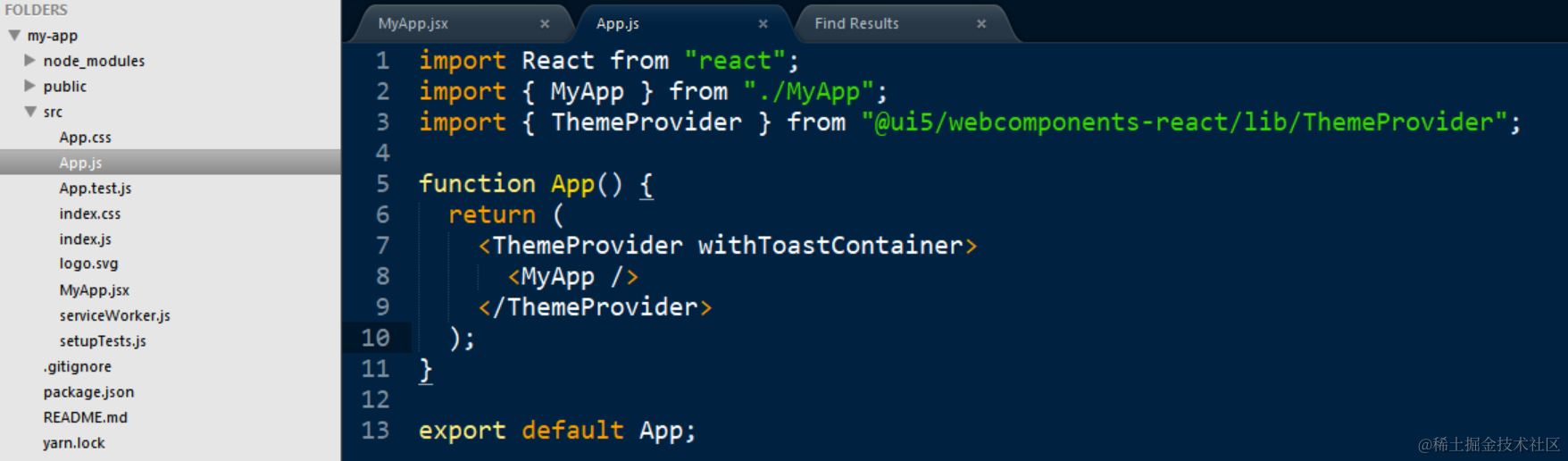 然后和正常的React应用一样,在App.js里引入我们自定义的Component: