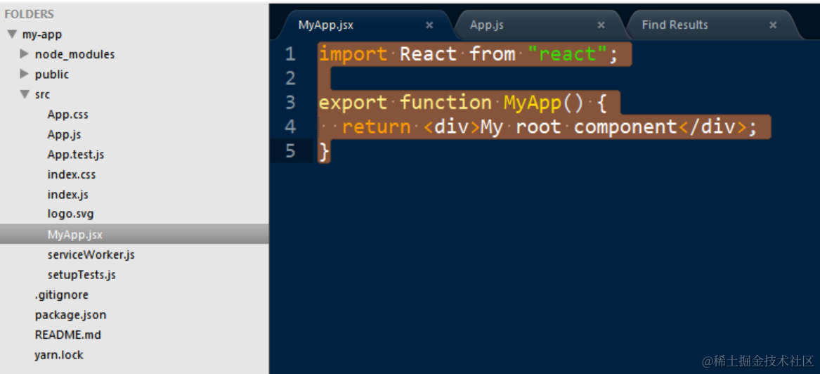 进入my-app项目的src文件夹里,新建MyApp.jsx: