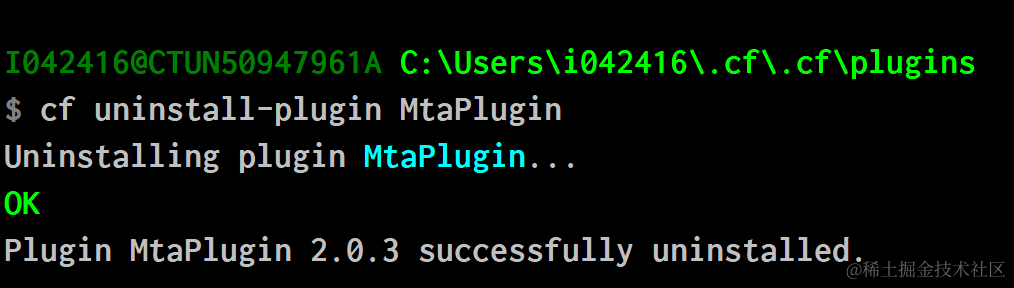 google发现,因为我现有的CloudFoundry插件,其提供的命令和即将安装的插件出现冲突了,比如两者都提供cf deploy命令。因此要先将已安装的插件卸载。