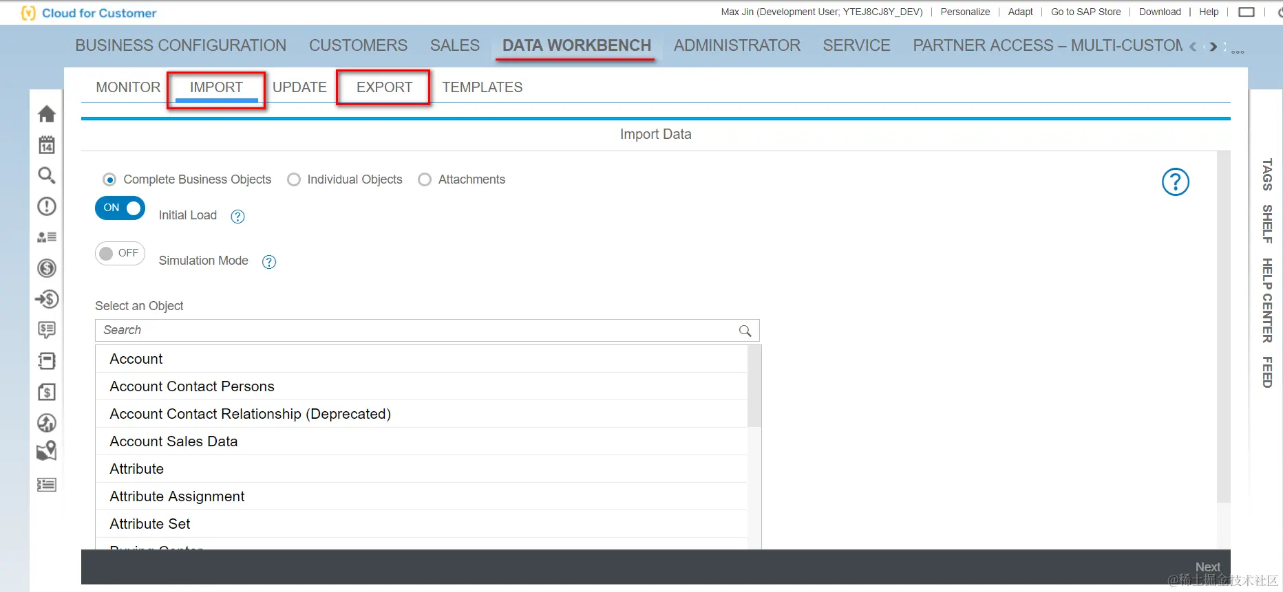 和C4C类似,也是通过csv来import/export: