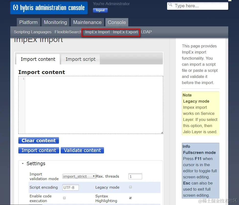 Hybris和C4C类似,都提供了csv import和export的UI:
