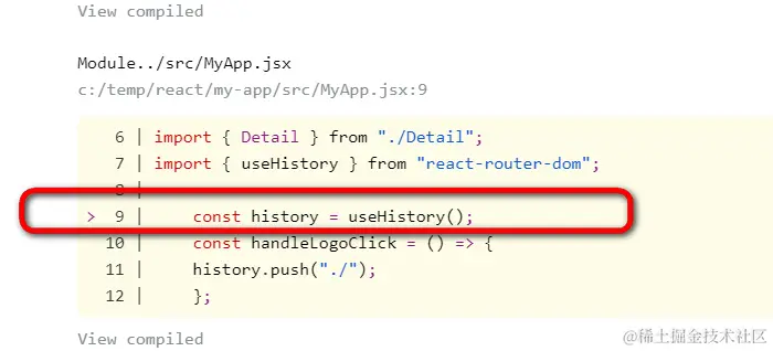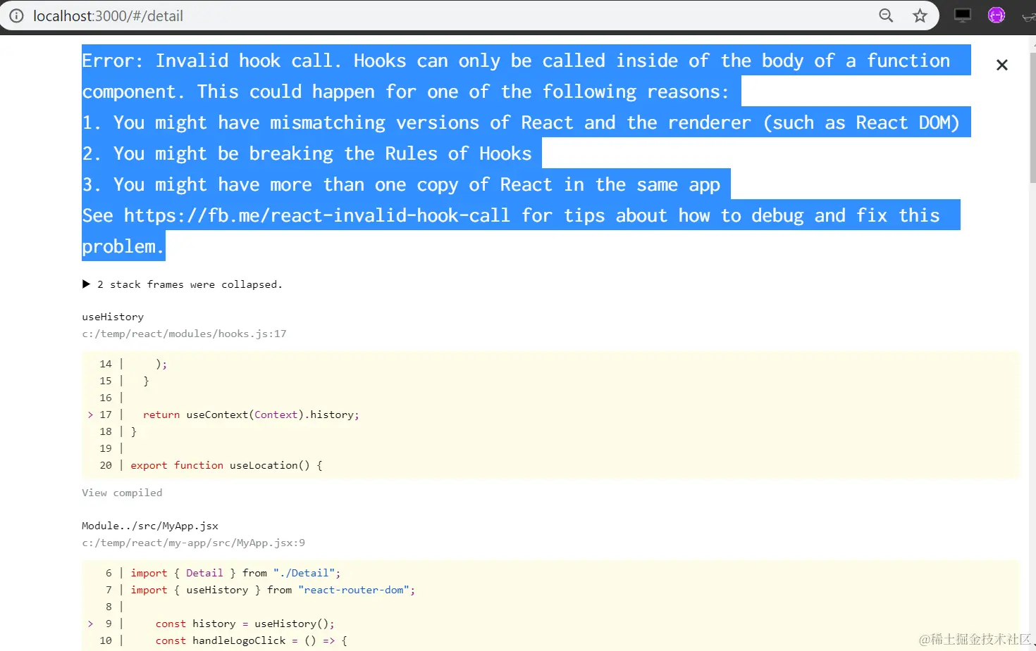 这个错误输出已经提醒了我,出错误的代码在我的应用程序MyApp.jsx里: