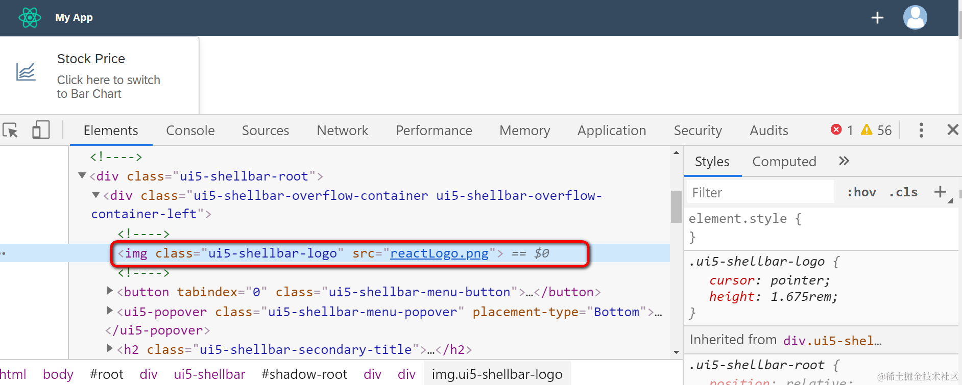 SAP UI5 Web Component for React的图标和图片处理 已注销 2021-04-25 96 阅读1分钟 这个React应用左上角的react图标,以及右上角的小人图标,是如何显示出来的? 把图片放到React应用的public文件夹下: 在React应用的ShellBar组件里,将图片名称赋给对应的logo和profile属性即可: 运行时的实现: 要获取更多Jerry的原创文章,请关注公众号"汪子熙":