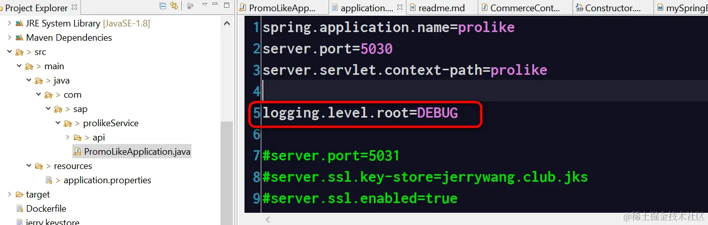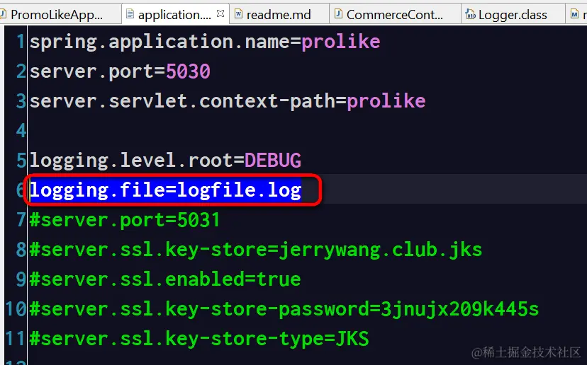 在Application.properties文件里使用logging.level.root配置项目全局的日志级别: