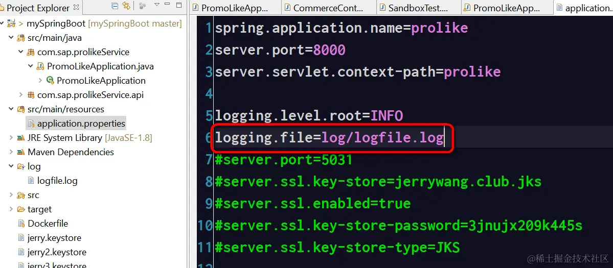 定义了一个log的持久化存储,这样SpringBoot应用在容器里运行时,我们可以用命令行进入容器内部,查看log文件夹下的日志文件。