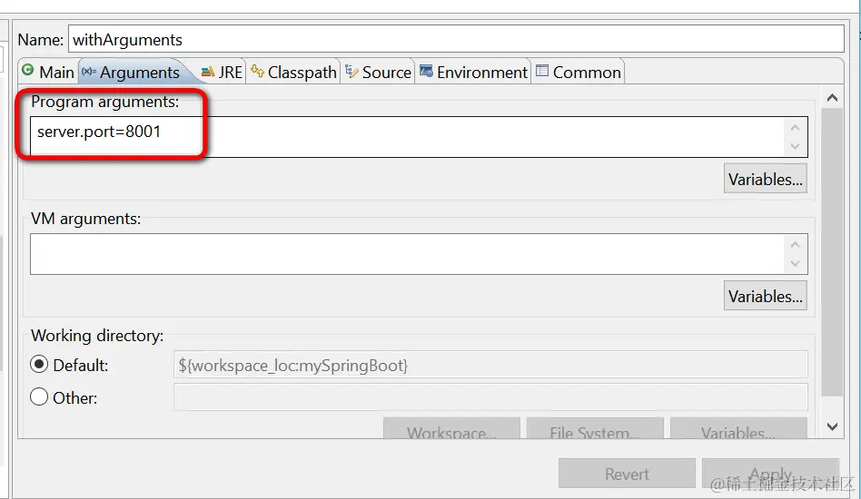 做个实验,在run as configuration里,program argument设置为server.port=8001,