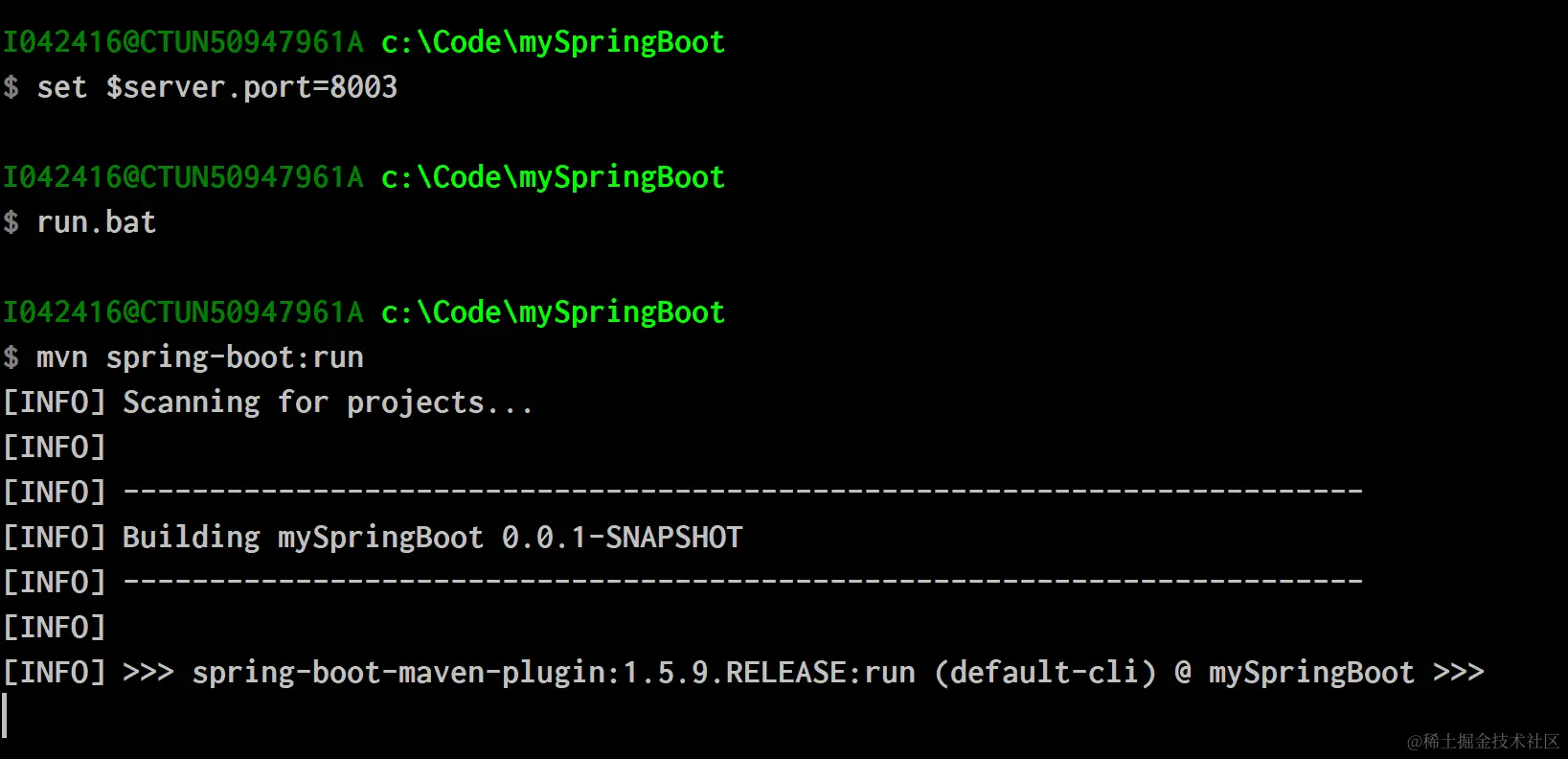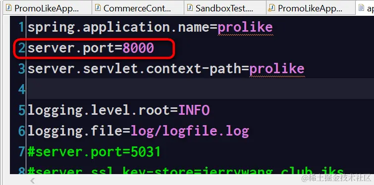 在SpringBoot项目内部的Application.properties文件设置成8000: