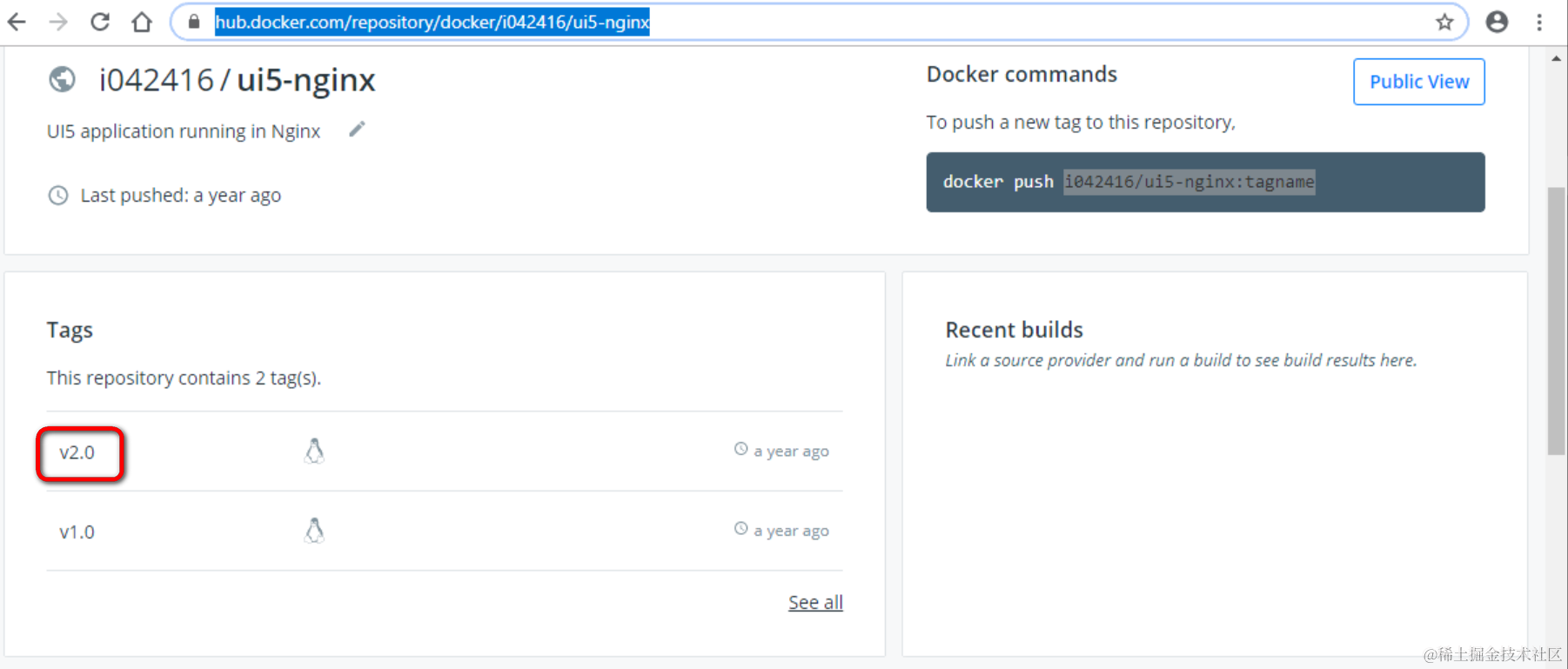 登录docker hub,确认使用的docker镜像和tag是否正确: