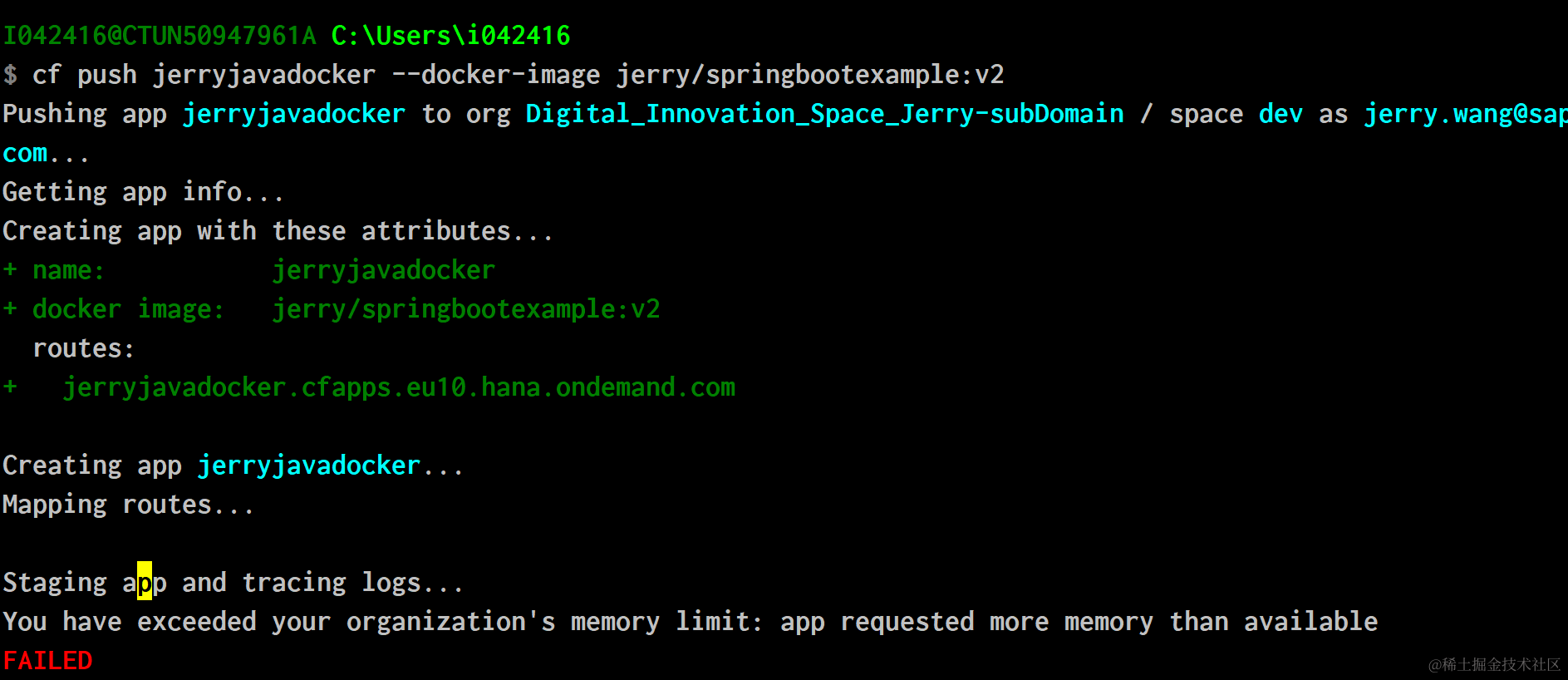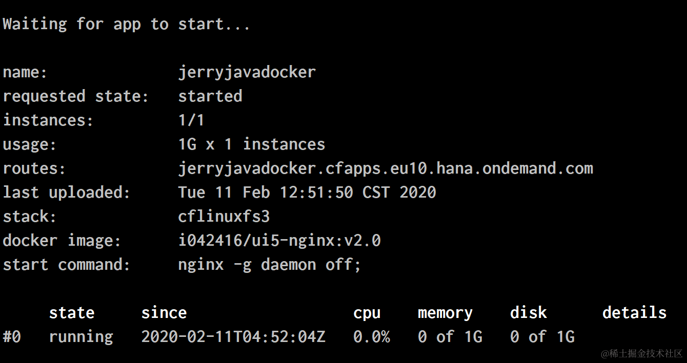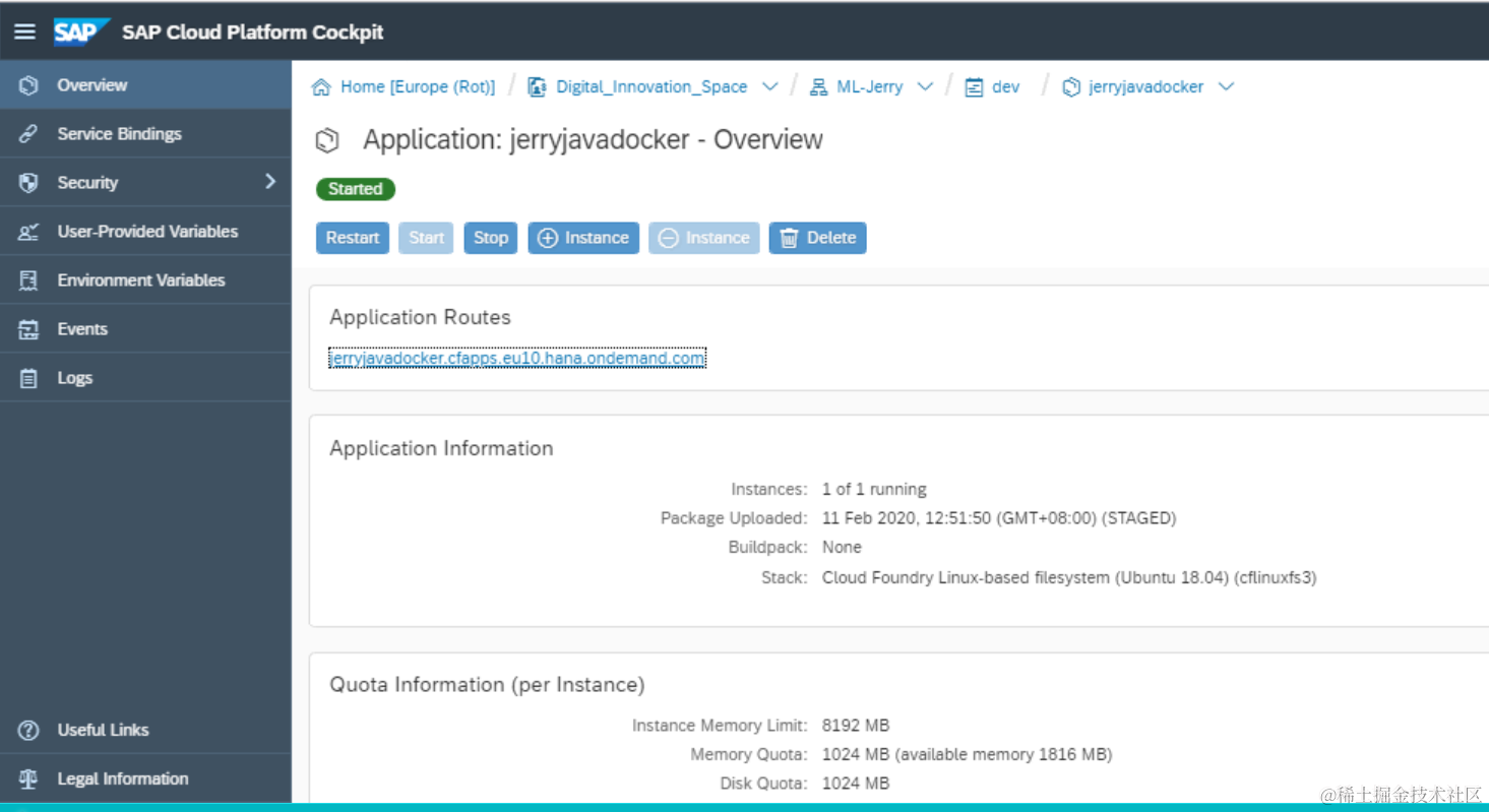 在SAP云平台上看到成功部署的Docker应用: