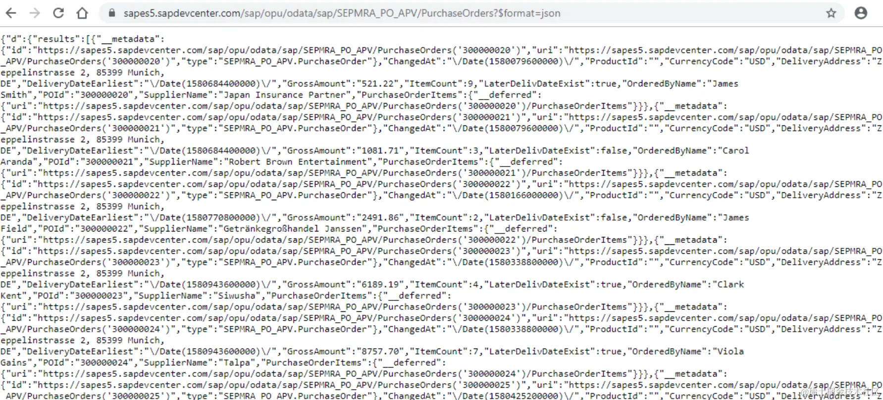 选择采购订单OData服务: