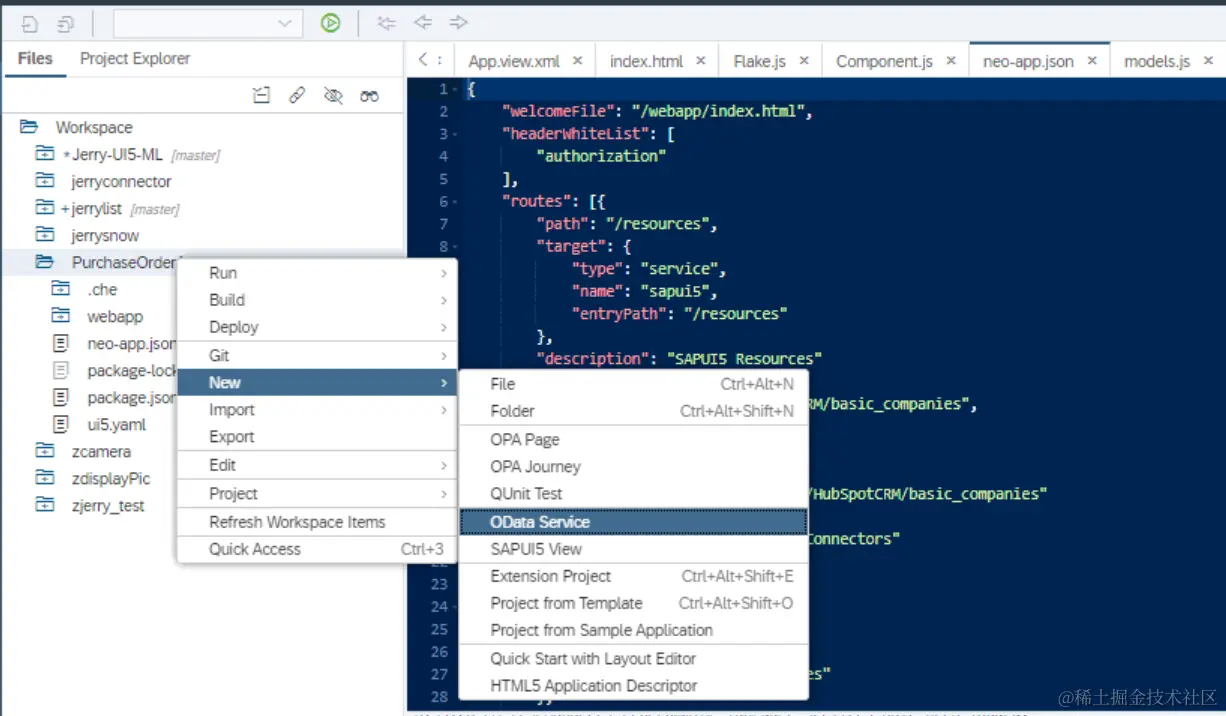右键菜单,新建一个OData服务: