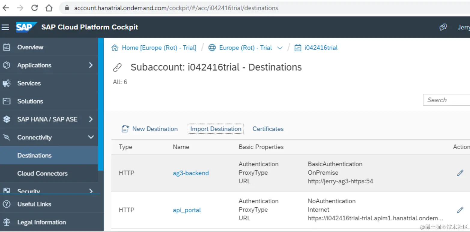 登录SAP云平台,创建一个指向ES5的Destination: