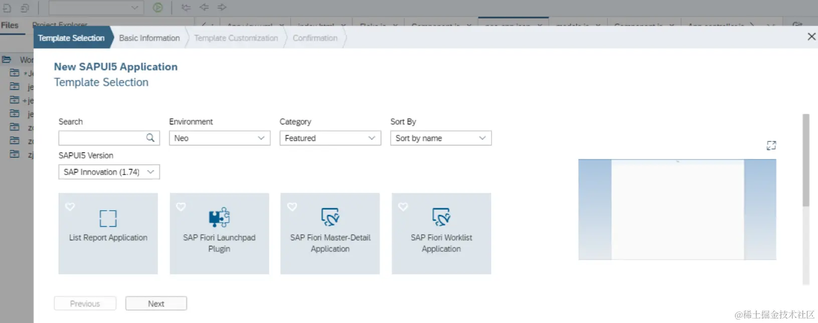 打开SAP云平台的WebIDE,新建一个项目,基于template创建一个SAP UI5应用: