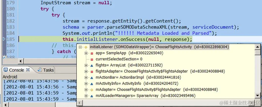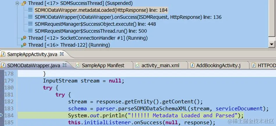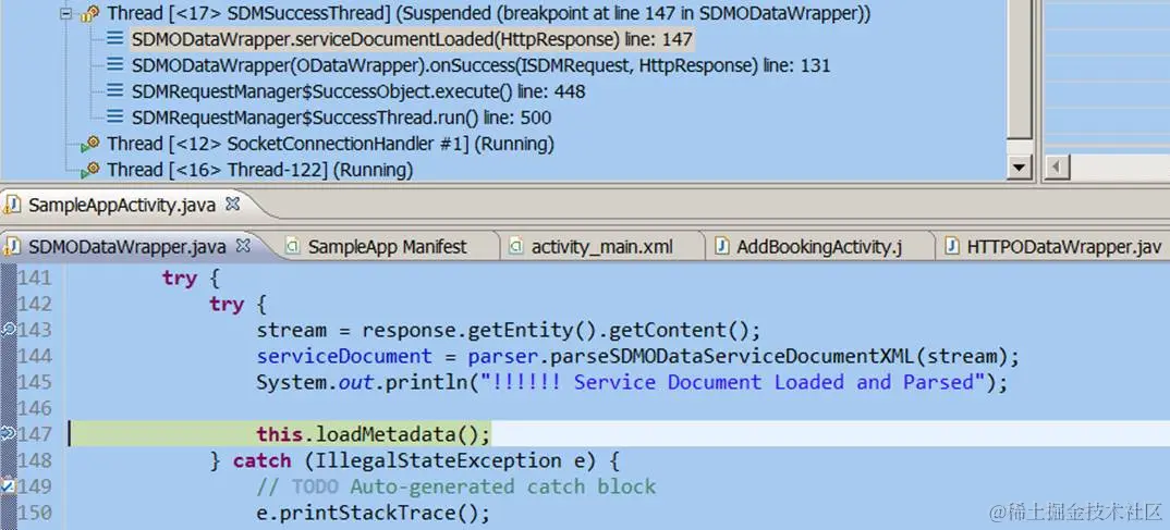 Since service document is loaded, next step is to try to load meta data. This is a state machine.