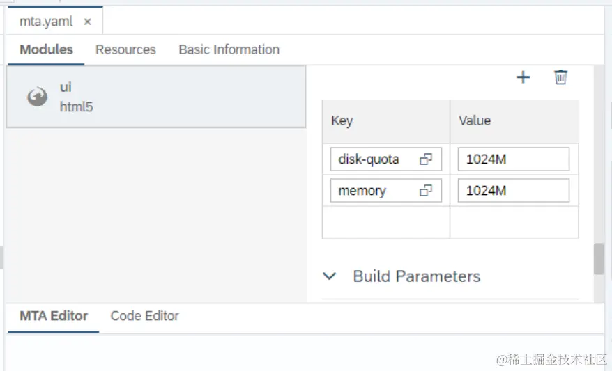 在mta.yaml文件里将disk-quota的值从默认的256M改成1024M即可解决问题。